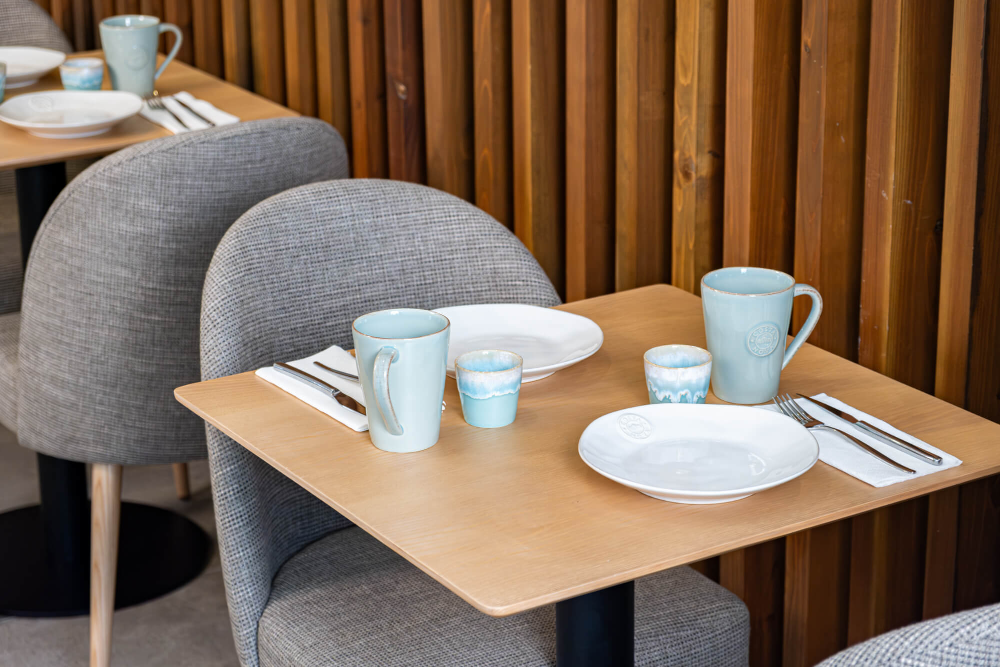 Cada fotografia foi pensada para comunicar a identidade do espaço, contemporâneo, acolhedor e com uma localização privilegiada. Das vistas aéreas sobre a marina à textura da loiça Costa Nova no restaurante, o objetivo foi claro: criar um banco de imagens que eleve a presença digital do Alto do Forte e convide quem vê a querer ficar.
